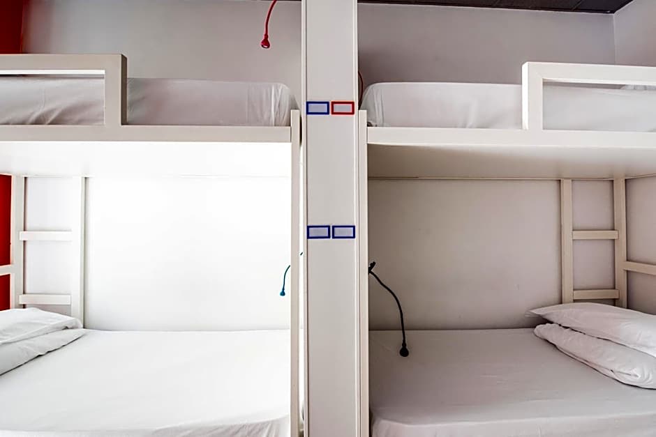The dormitory room includes a shared bathroom equipped with a shower. The unit offers 4 beds.